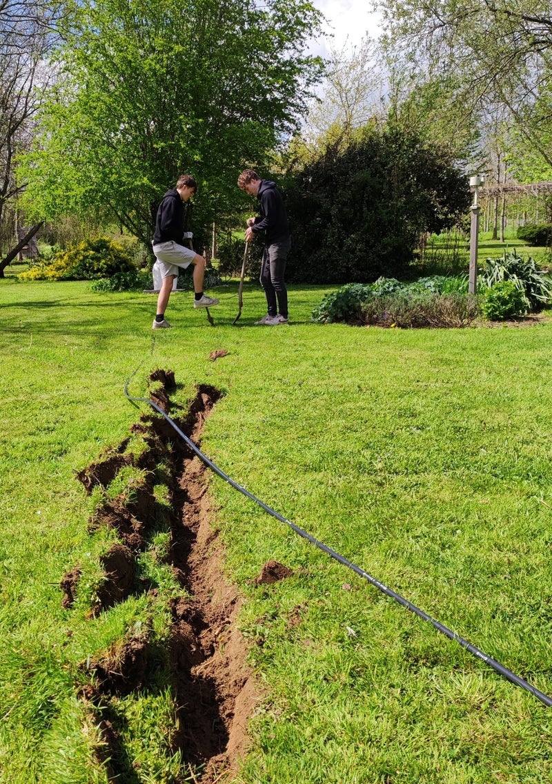 We wonen nu ruim 6 jaar hier in Rezay. Maar wat een ongelooflijk nat voorjaar. In al die jaren is het nog nooit zo nat in de tuin geweest. Op veel plaatsen staan gewoon plassen op het gras. Ik heb het nu wel een keer kunnen maaien, maar ook al een paar keer vast gestaan met de zitmaaier. Op veel plaatsen is het gras heel drassig. En dan denk ik toch regelmatig aan de vele droge periodes dat ik elke dag wel water moest geven om de planten of boompjes niet uit te laten drogen. Dan toch maar liever elke dag water geven dan dit.