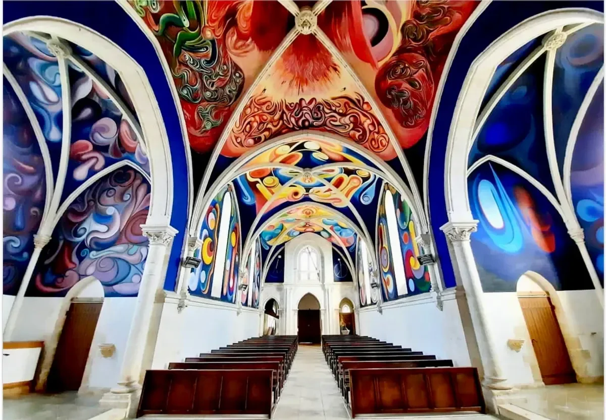 Aarzel niet om de deur van deze bescheiden 19e-eeuwse kerk open te duwen! Van vloer tot plafond een zeldzame en magnifieke fresco,s.
