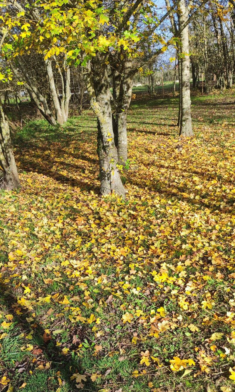 2022 Het wordt herfst in Rezay. Vanaf deze plaatst heb ik regelmatig een foto genomen om de periode herfst naar winter vast teleggen. Op deze foto zie je de eerste blaadjes bruin worden. De fluweel boom is nog bijna helemaal groen. Maar de Essen links staan al zonder blad.